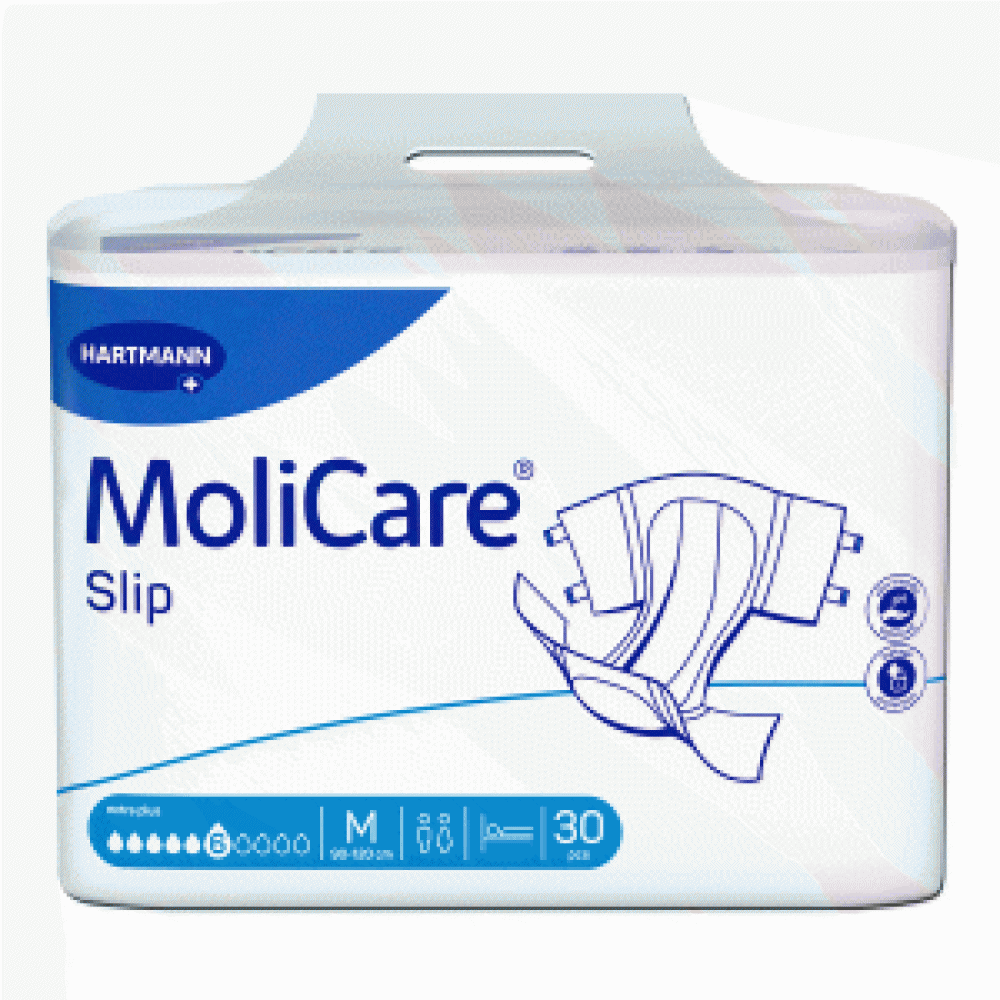 Hartmann Molicare slip (=πάνες) νύχτας με κάλυμμα από φλις σε όλη την επιφάνεια ώστε το δέρμα να παραμένει στεγνό. Εσωτερικά τοιχώματα που συγκρατούν την υγρασία. Υφασμάτινη εξωτερική επιφάνεια καθώς και ελαστικές πτυχές που αγκαλιάζουν το πόδι. Mε υπεραπορροφητικό πυρήνα που αιχμαλωτίζει τις δυσάρεστες οσμές. Ταινίες, που προσφέρουν αντοχή ενάντια στις διάφορες δυνάμεις που ασκούνται στην περιοχή των γοφών και επιπλέον παρέχουν τη δυνατότητα επαναλαμβανόμενου κλεισίματος. Οι πάνες Hartmann προσφέρουν ασφάλεια φιλική προς το δέρμα χάρη στο απαλό, αεροδιαπερατό, αδιάβροχο υλικό φλις στην περιοχή των γοφών, με αποτέλεσμα να αποφεύγονται ερεθισμοί του δέρματος. Ο δείκτης υγρασίας υποδεικνύει με τον αποχρωματισμό του τη χρονική στιγμή αλλαγής. Για ασθενείς που παρουσιάζουν βαριάς μορφής ακράτεια ούρων και κοπράνων, καθώς και για ασθενείς με ιδιαίτερα αυξημένη εξάρτηση και έντονη ανησυχία.